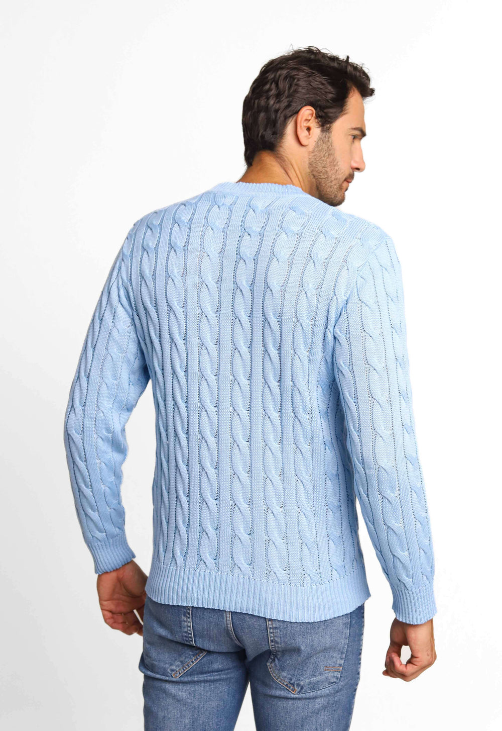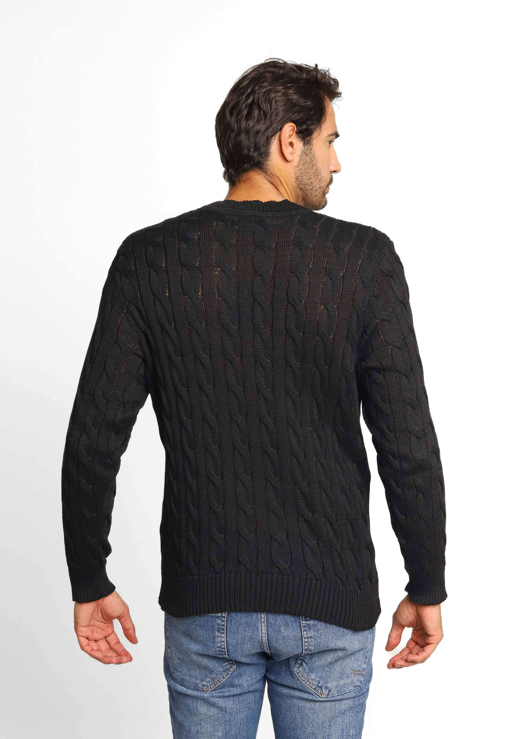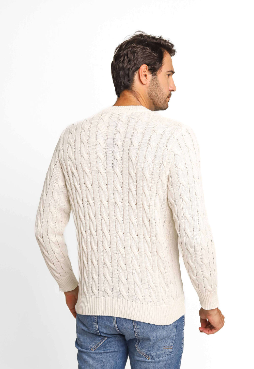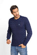 Suéter masculino com detalhes que valorizam o visual, ideal para composições elegantes com conforto térmico no dia a dia.