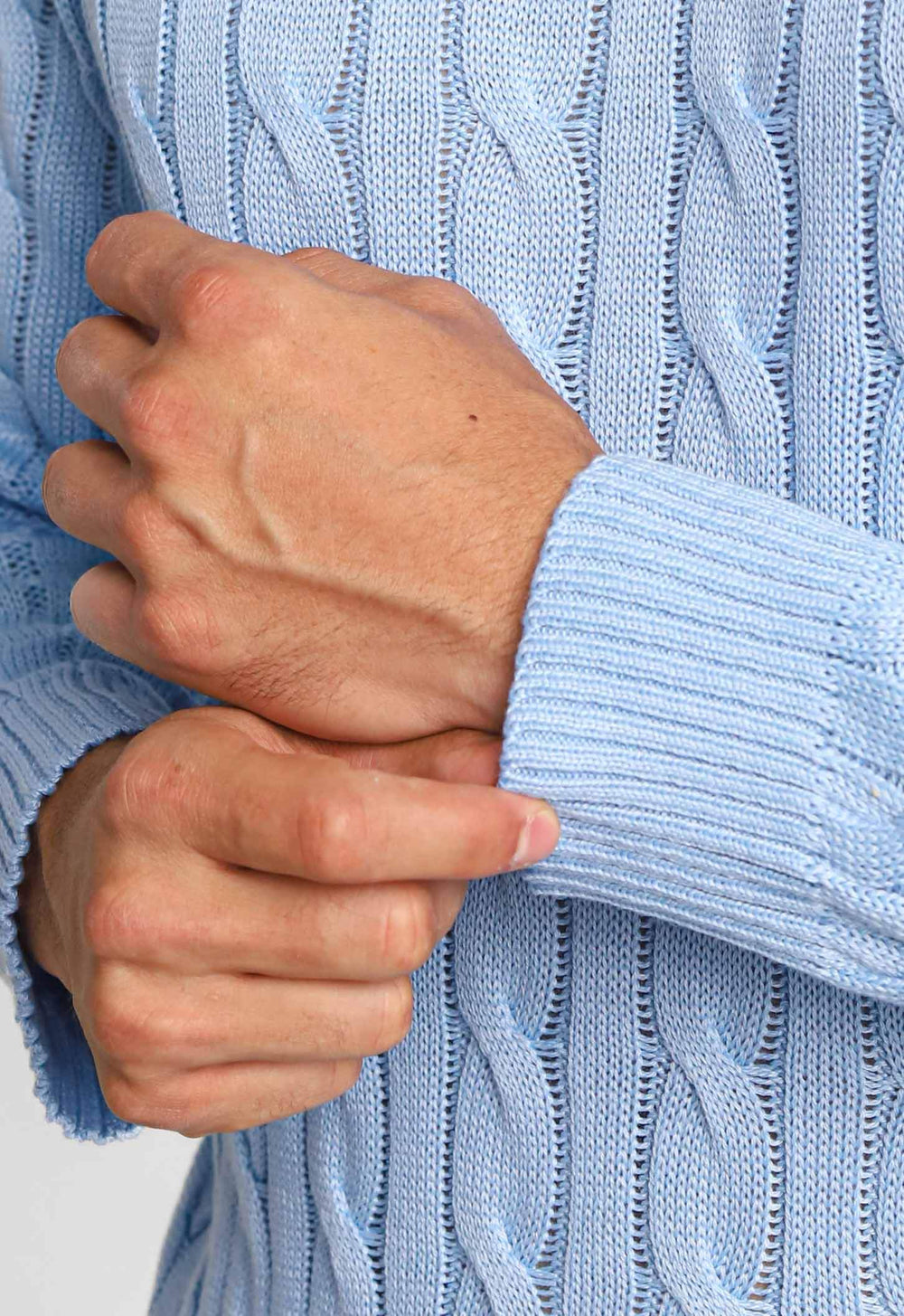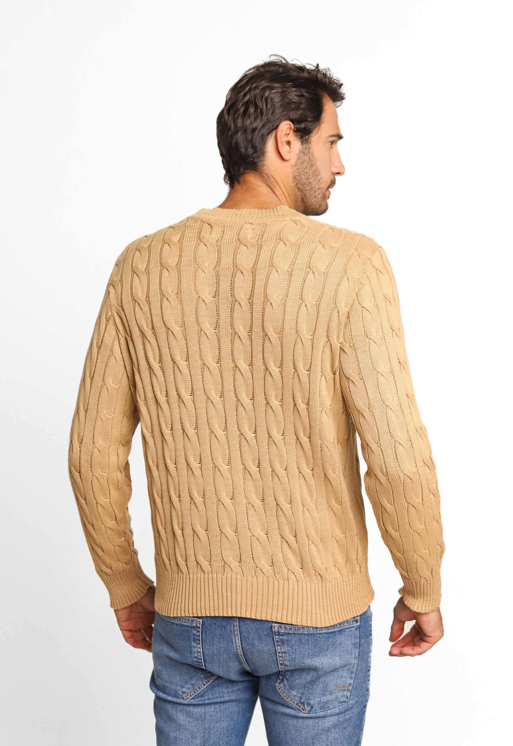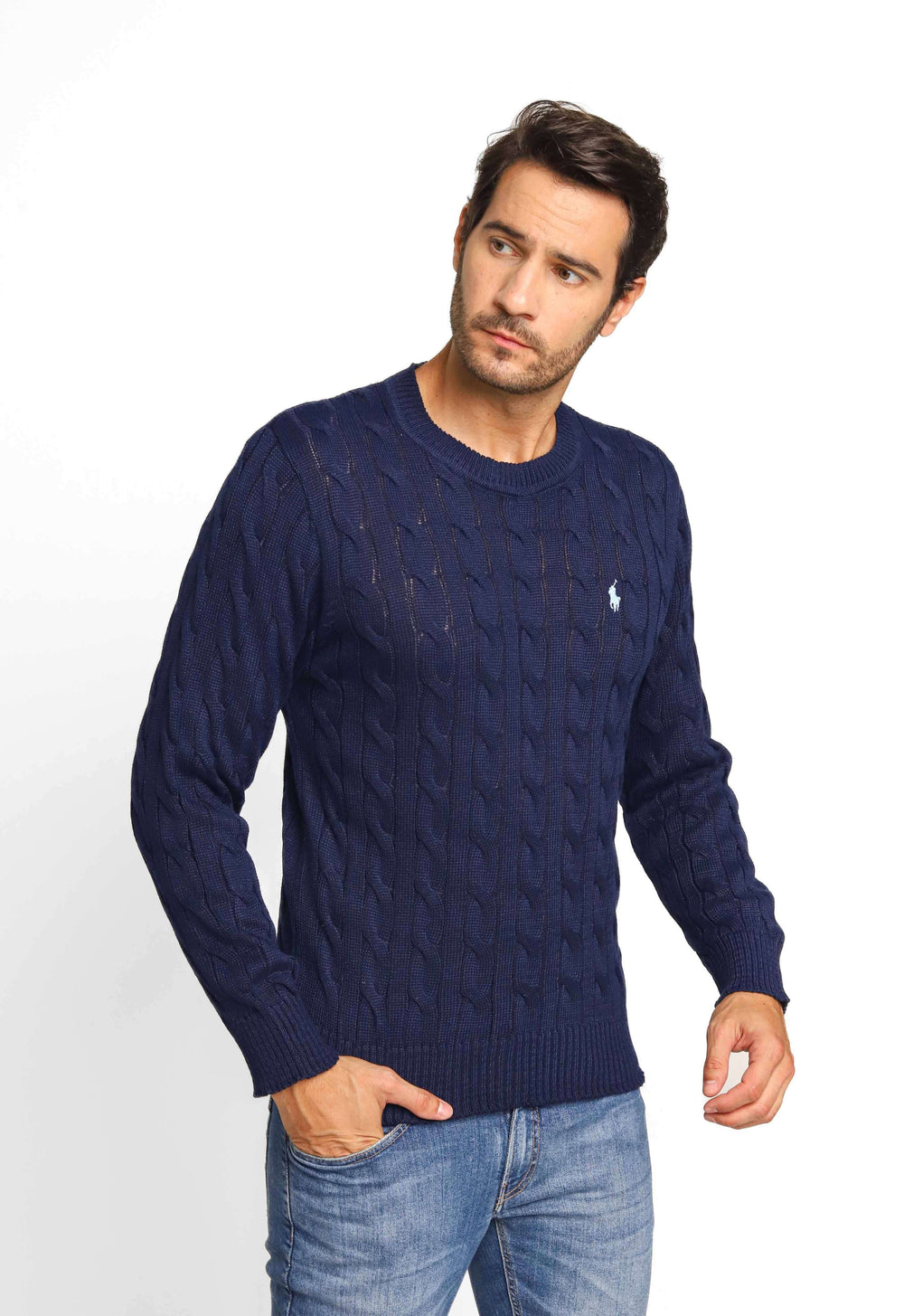 Suéter masculino com detalhes que valorizam o visual, ideal para composições elegantes com conforto térmico no dia a dia.